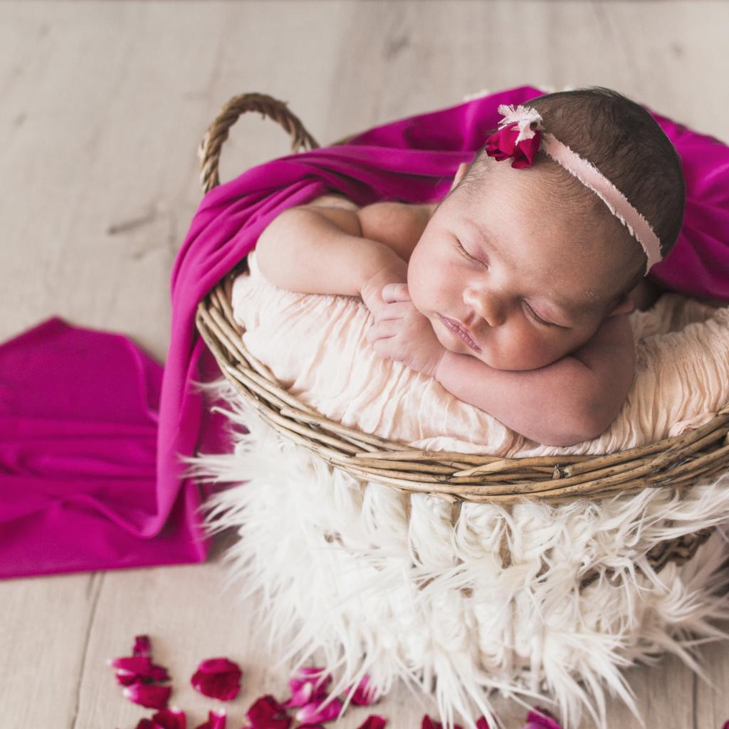 Wallpaper Little girl sleeping in a basket under the veil
