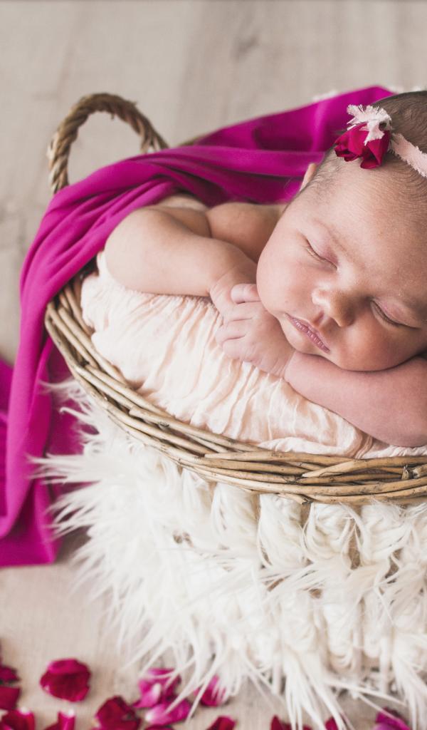 Wallpaper Little girl sleeping in a basket under the veil