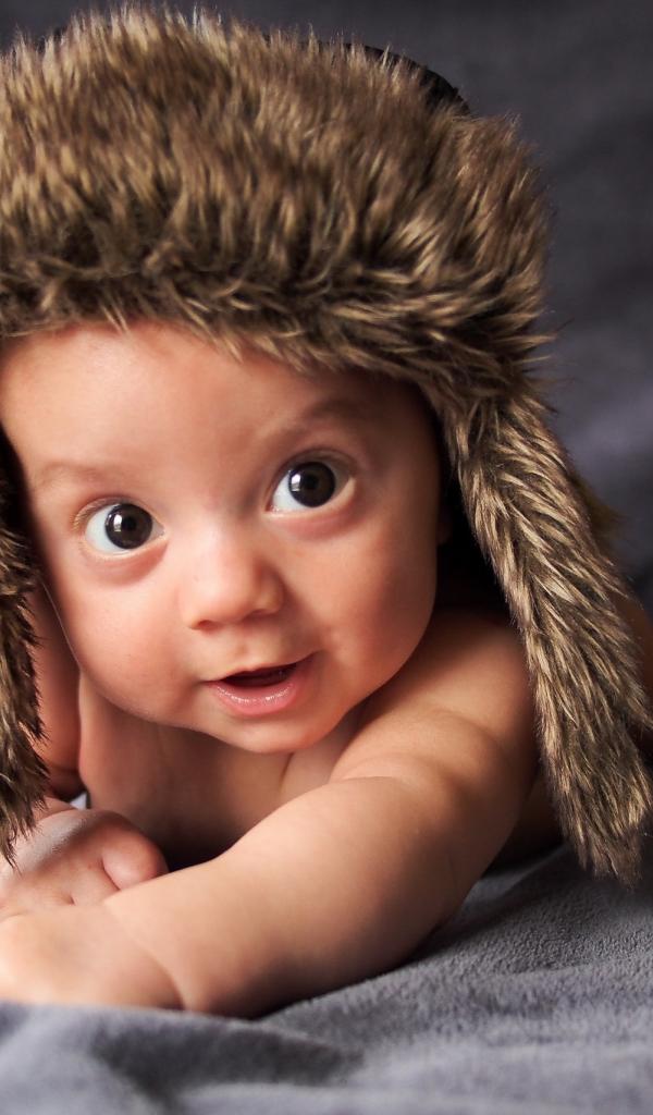 Wallpaper Little brown-eyed baby in a warm hat