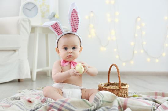Wallpaper Little boy with bunny ears and easter egg in hands