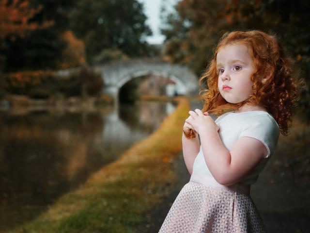 Wallpaper Beautiful red-haired girl by the river in the park