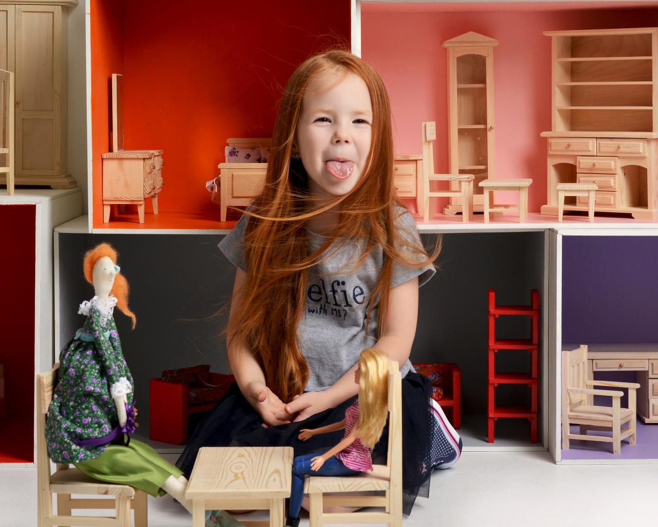 Wallpaper Little long-haired girl shows tongue