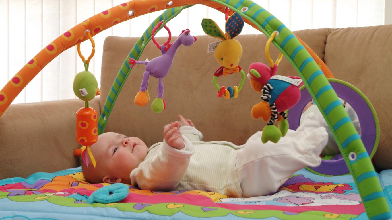 Wallpaper A baby with colorful toys