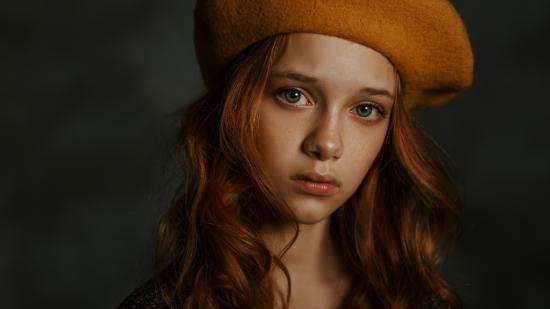 Wallpaper Sad red-haired green-eyed girl in a beret