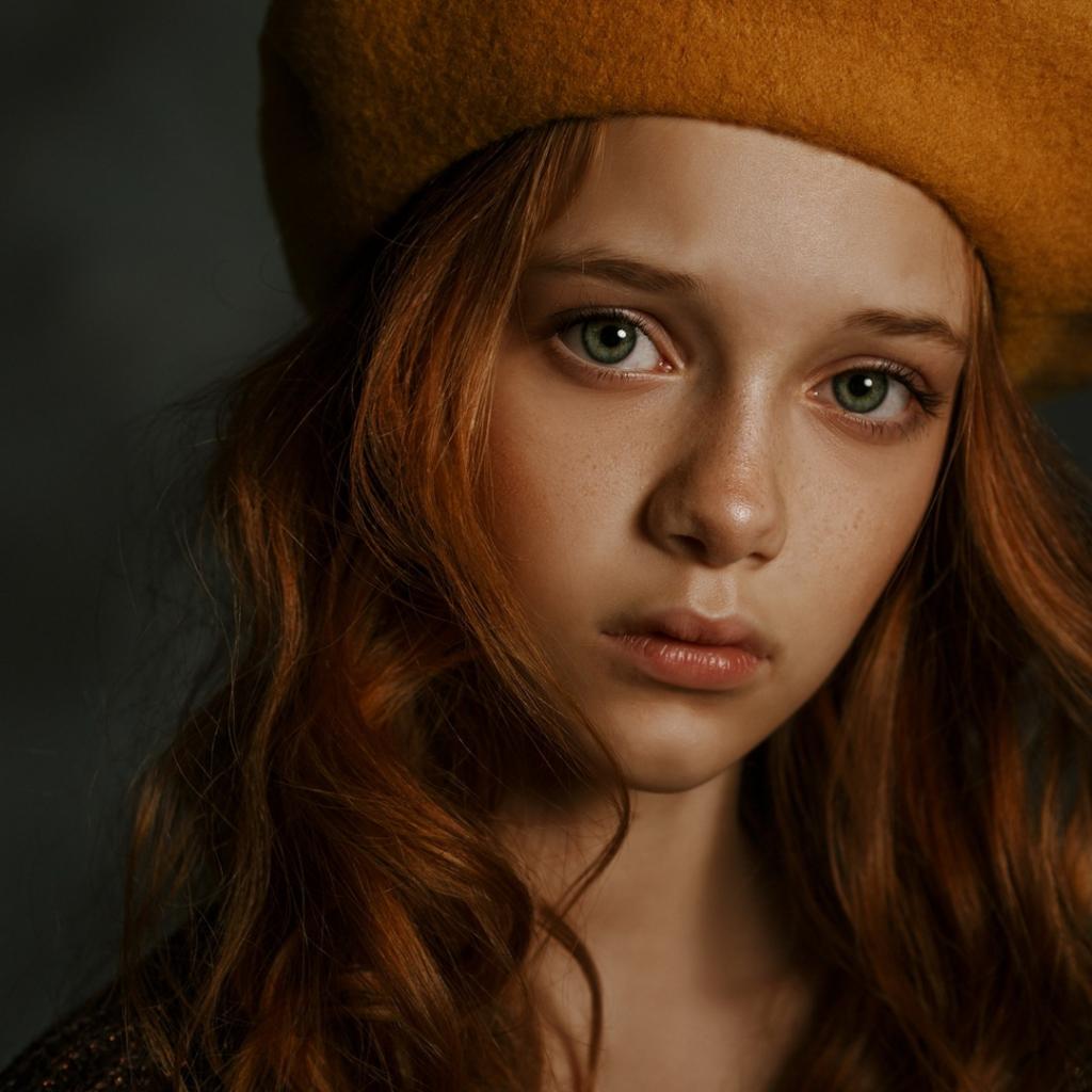 Wallpaper Sad red-haired green-eyed girl in a beret