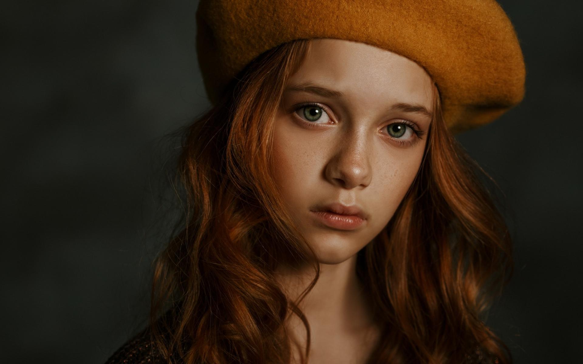 Wallpaper Sad red-haired green-eyed girl in a beret