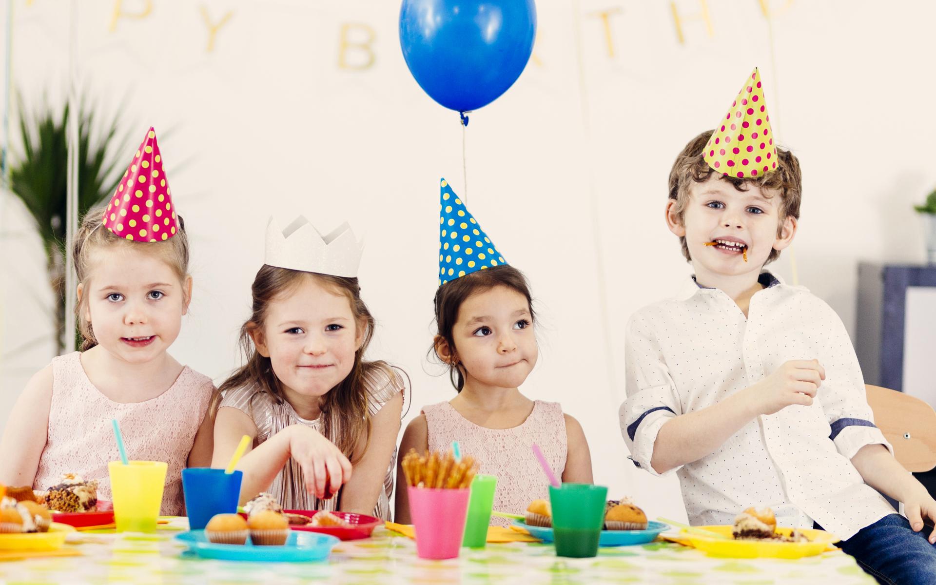Wallpaper Small children celebrate a children`s holiday at the table