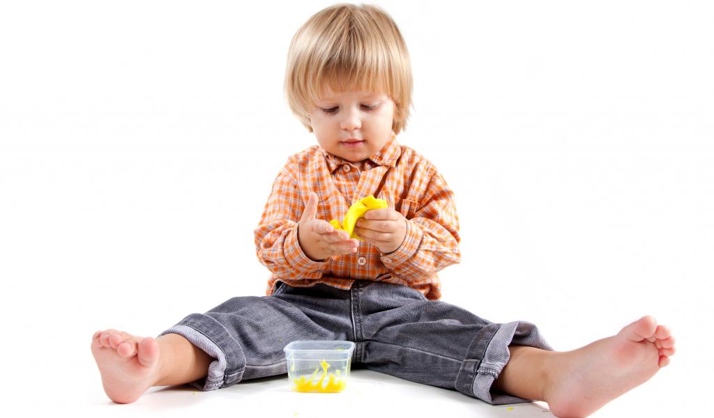 Wallpaper Little boy with toy on white background