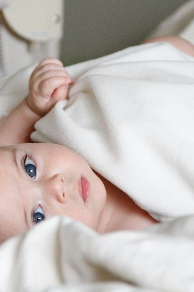 Wallpaper A small chest blue-eyed child lies under a white veil.