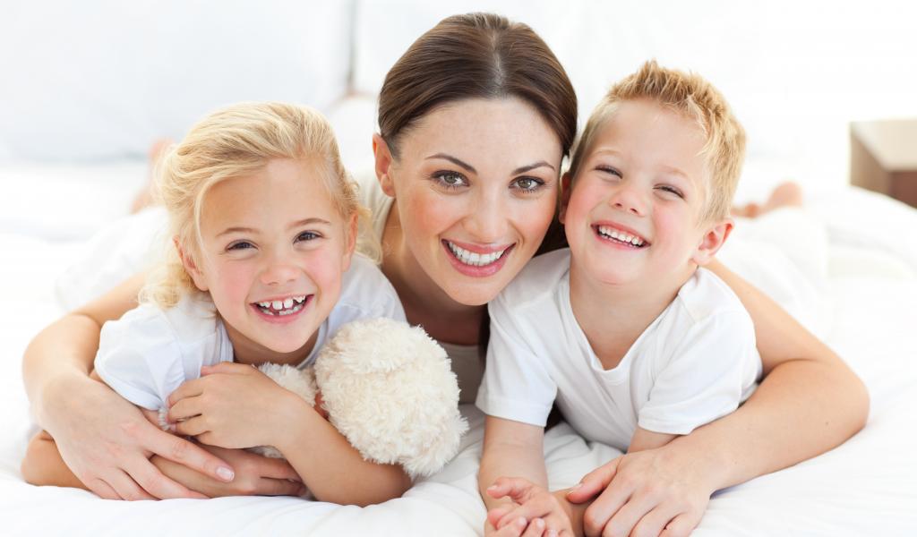 » Wallpaper Smiling mother with two children