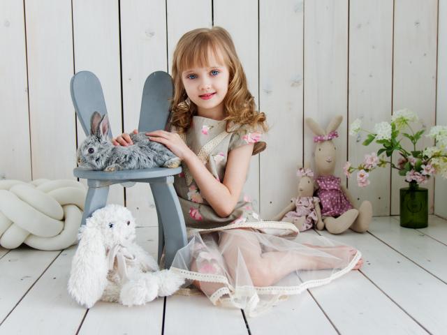 Wallpaper Little girl with toys in the room sitting on the floor