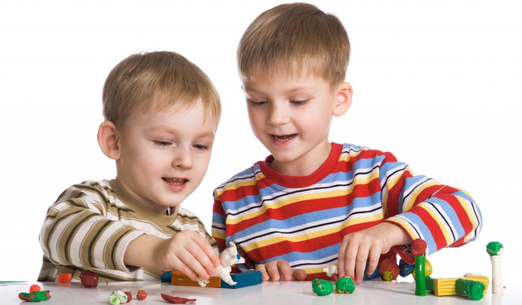 Wallpaper Two boys playing toys on white background