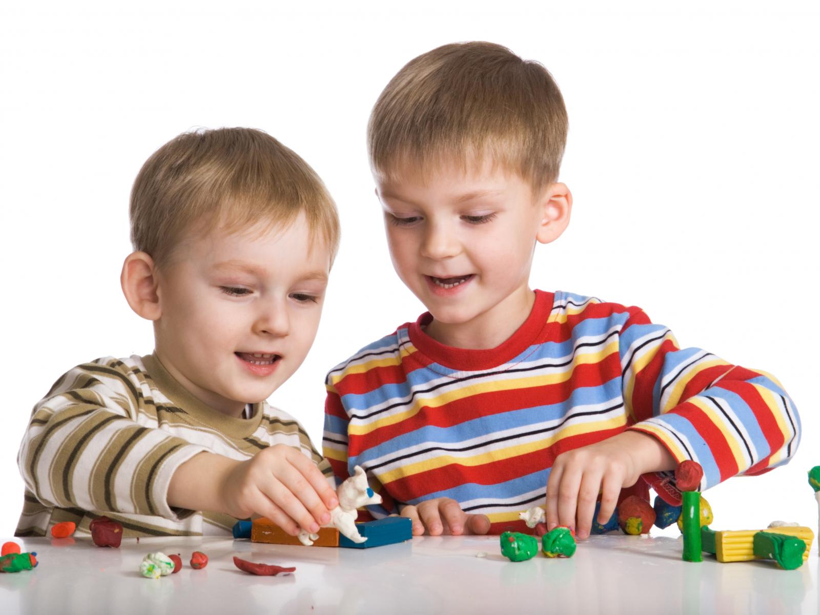 Wallpaper Two boys playing toys on white background