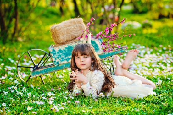» Wallpaper Little girl lying on green grass