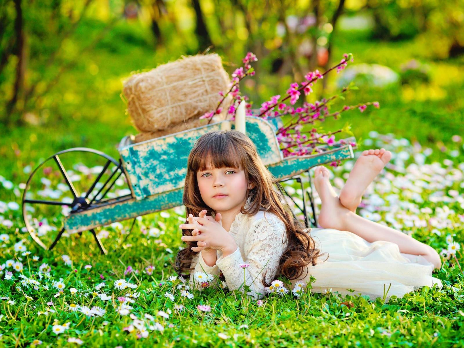 » Wallpaper Little girl lying on green grass