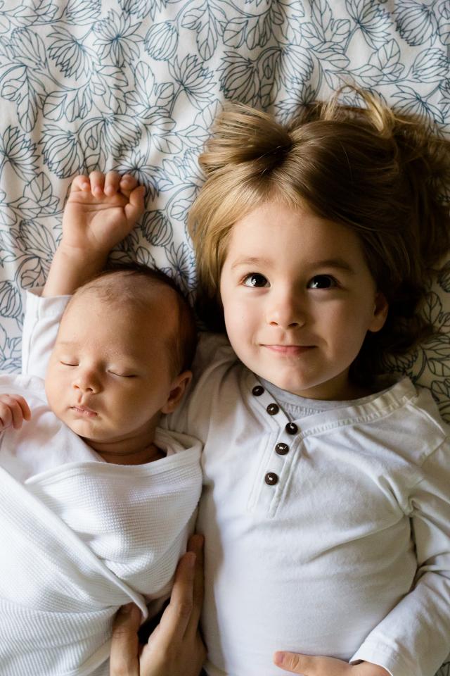 Wallpaper The little girl is lying with a baby