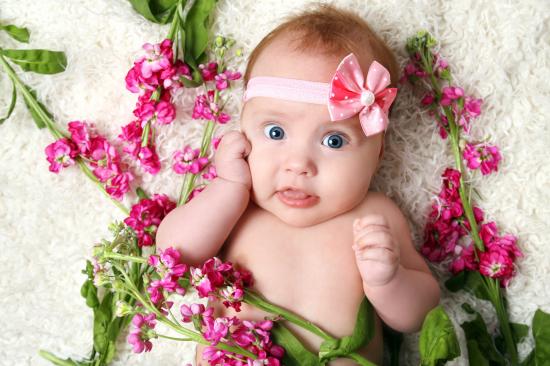 Wallpaper Little girl with a bandage lies with pink flowers