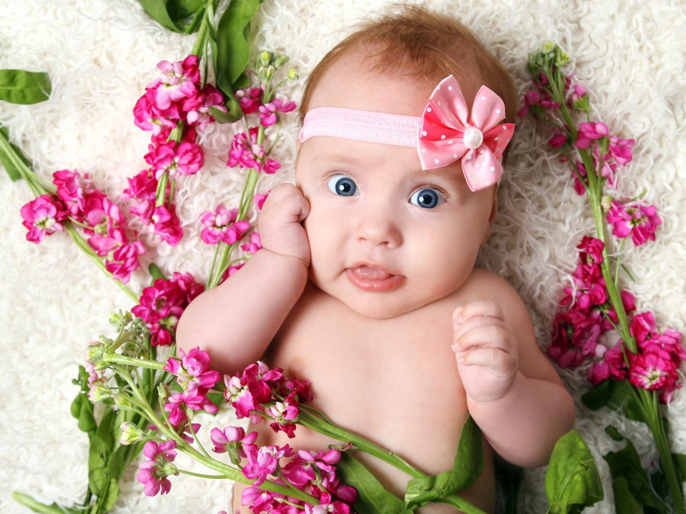 Wallpaper Little girl with a bandage lies with pink flowers