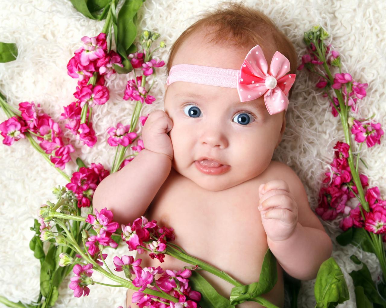 Wallpaper Little girl with a bandage lies with pink flowers