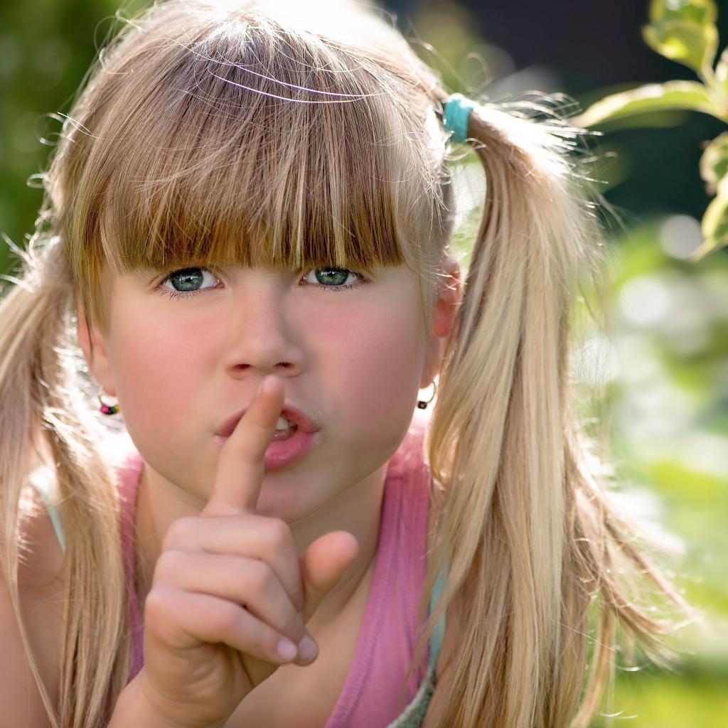 Wallpaper Little green-eyed girl with a finger at the mouth
