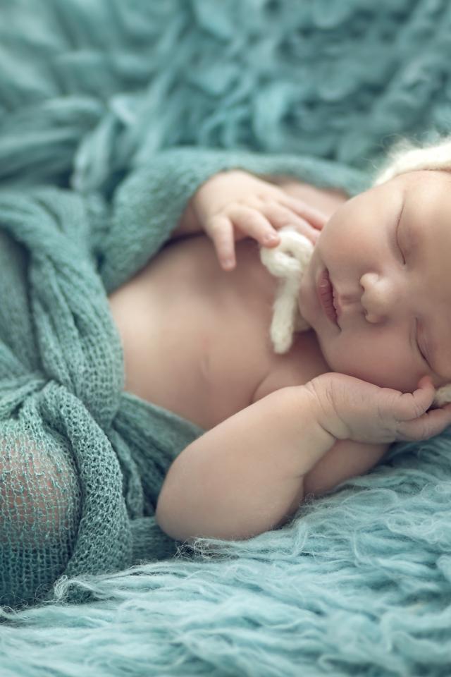 Wallpaper Little baby in a knitted hat is sleeping on a fur blanket