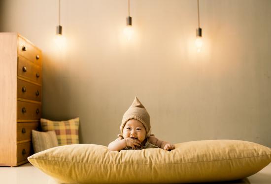 Wallpaper A small child is lying on a pillow under the lamps.