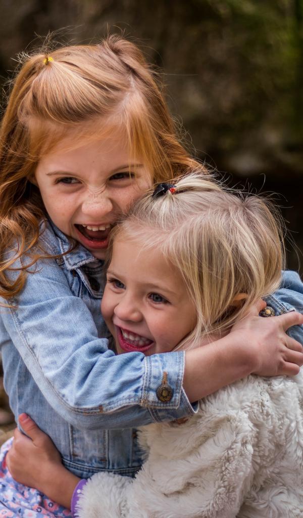 Wallpaper Two little sisters hug each other