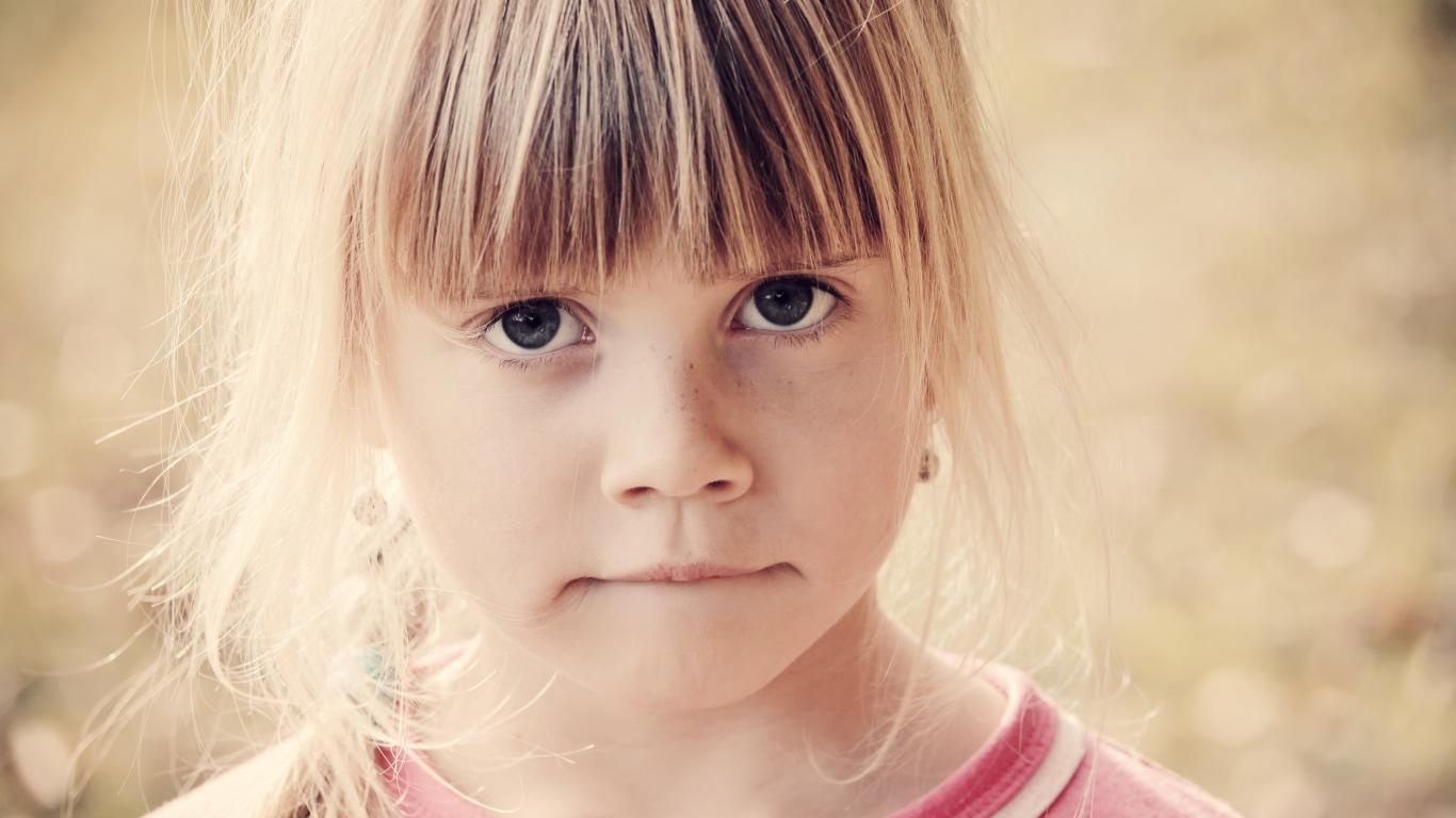 » Wallpaper Serious little girl face closeup