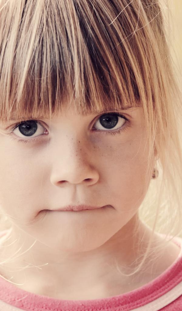 Wallpaper Serious little girl face closeup