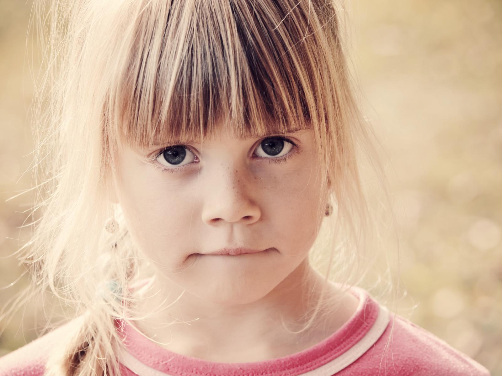 » Wallpaper Serious little girl face closeup