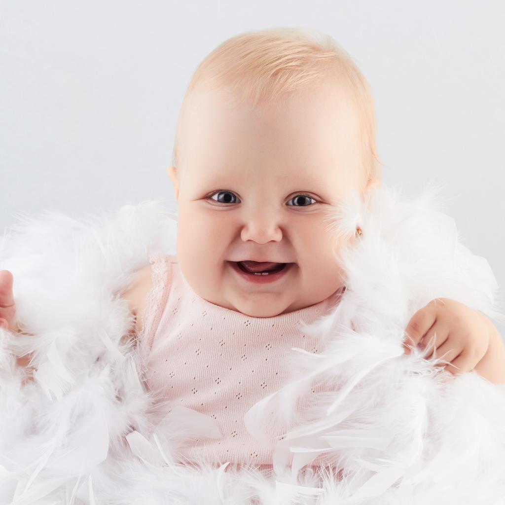 Wallpaper Laughing little girl in beautiful dress on green grass
