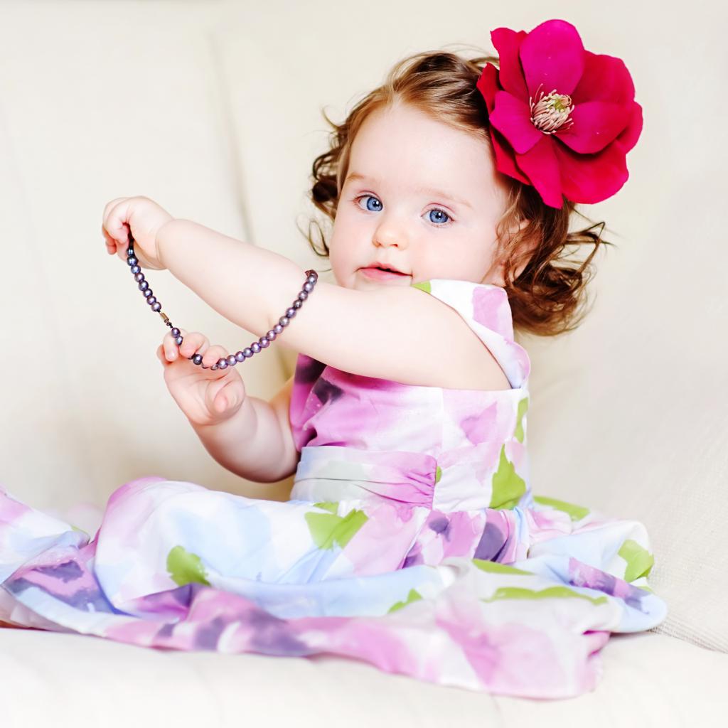 Wallpaper Cute blue-eyed baby with a big red flower in her hair