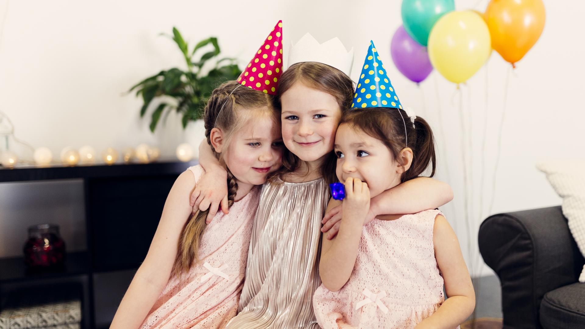 Wallpaper Three little girls in holiday caps