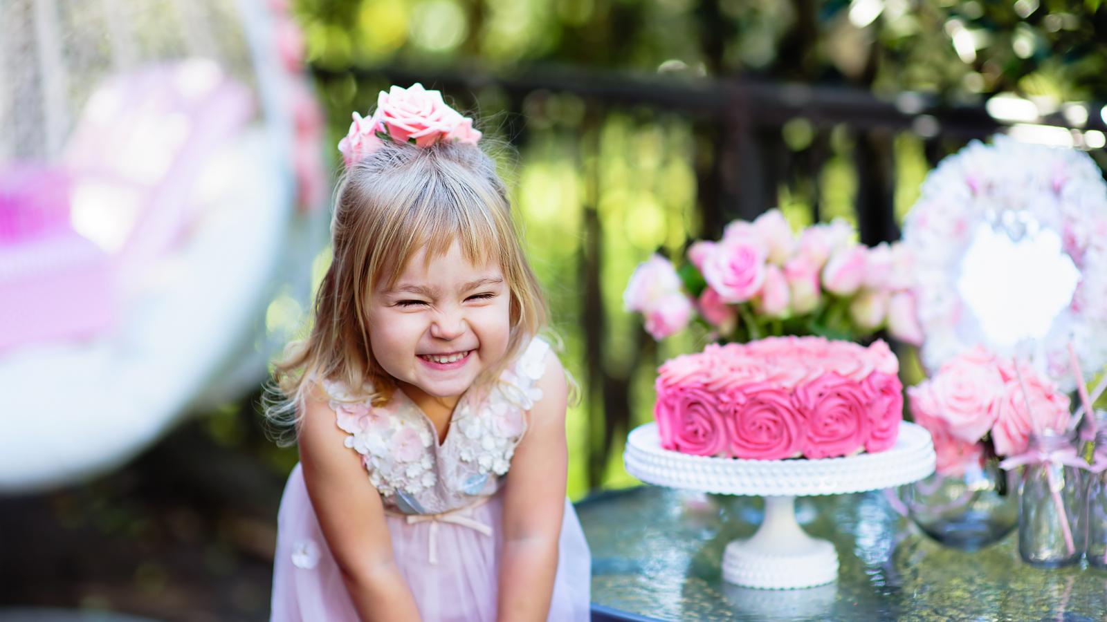 Wallpaper Little smiling girl with birthday cake birthday