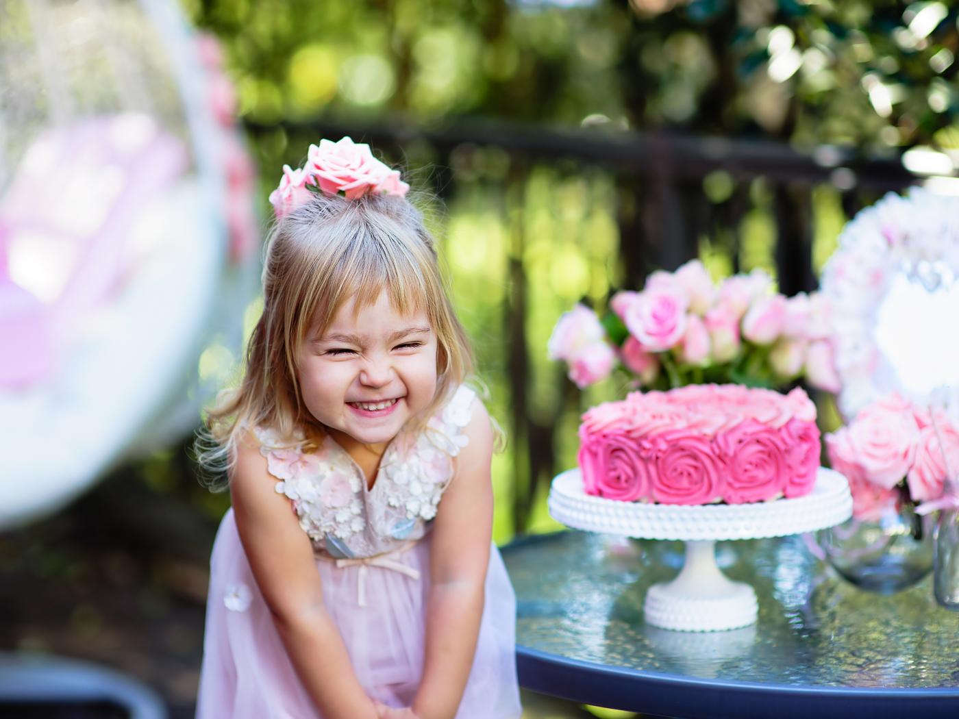 Wallpaper Little smiling girl with birthday cake birthday