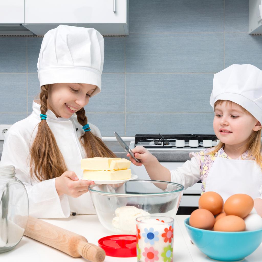 Wallpaper Two little girls in cook costumes cook in the kitchen