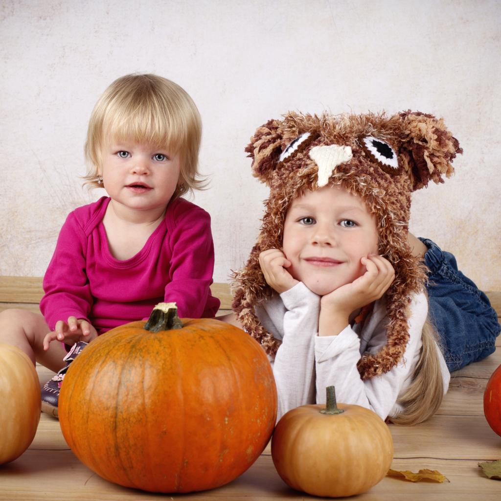Wallpaper Two little kids with pumpkins in the room