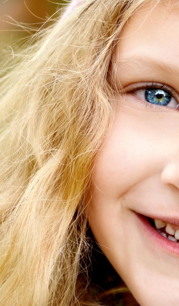 Wallpaper Smiling blonde girl with blue eyes close-up