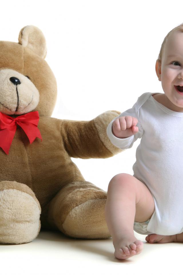 Wallpaper Smiling baby with a teddy bear