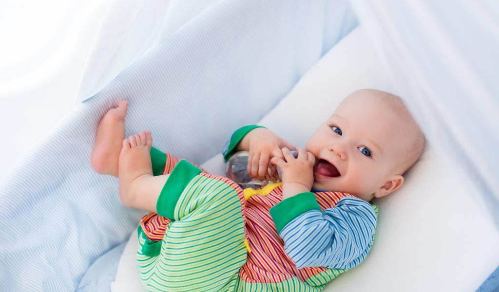 Wallpaper Smiling baby in the cradle