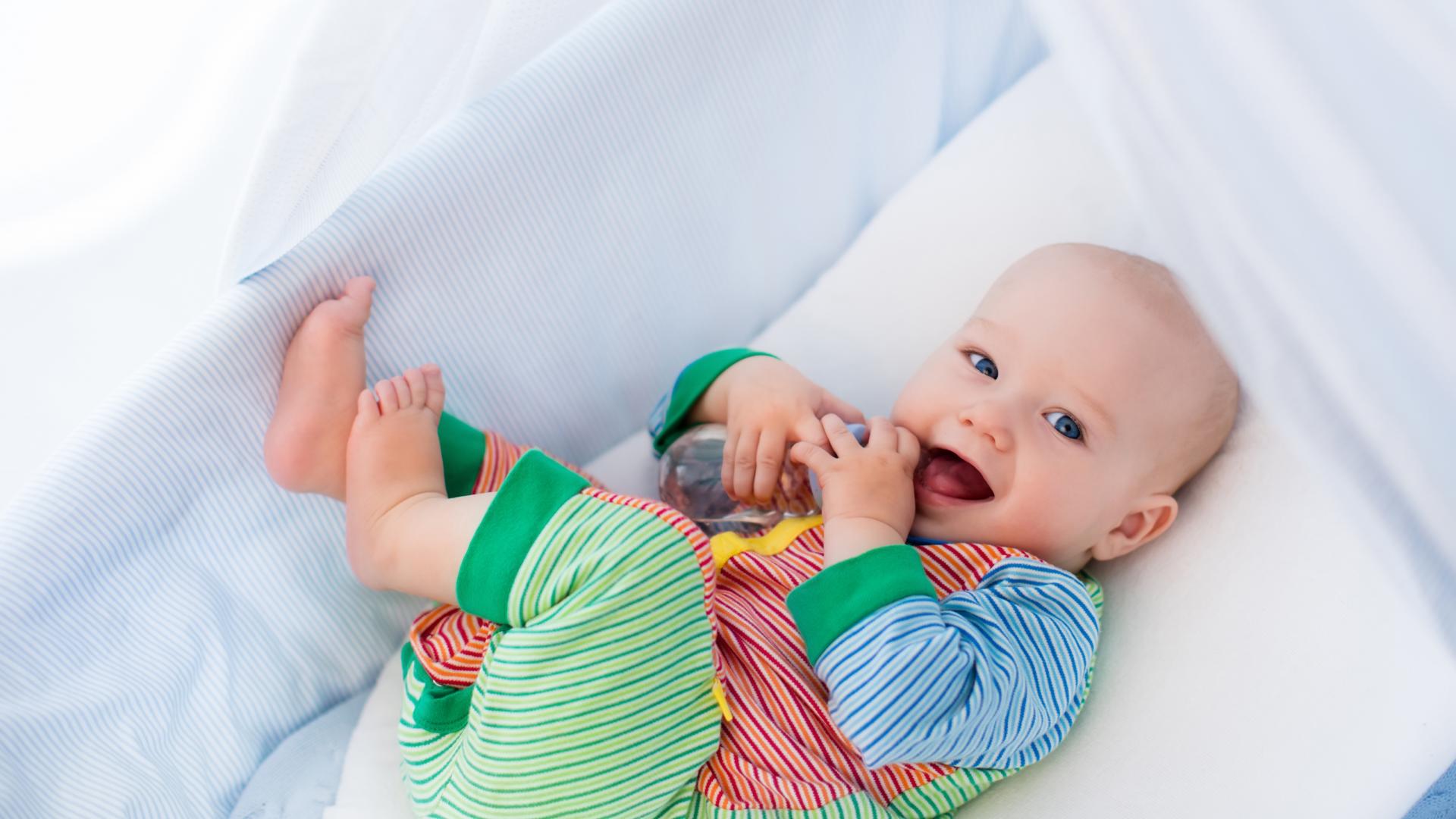 Wallpaper A sleeping baby girl in a pink suit in a cradle