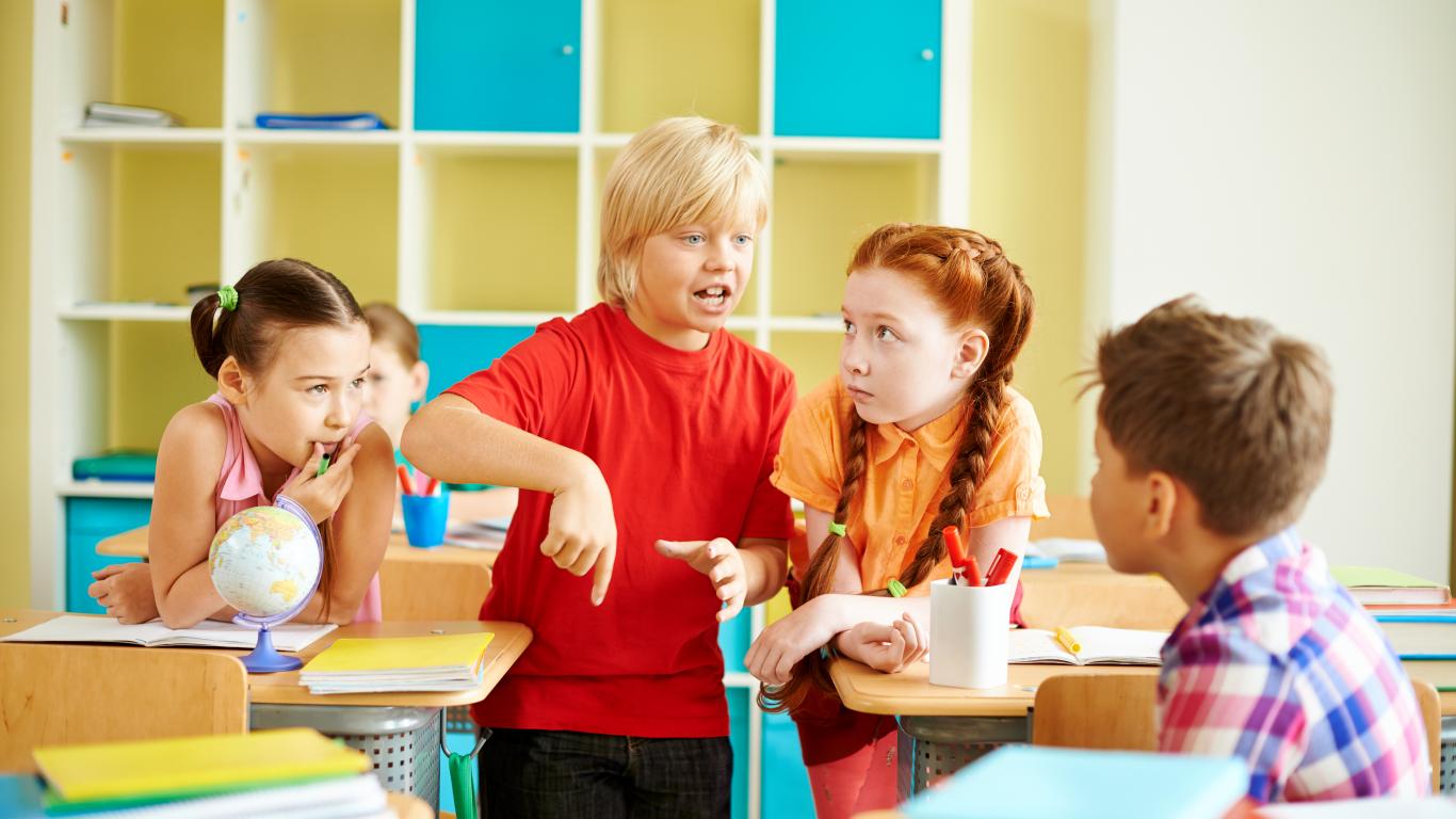 Wallpaper Schoolchildren have a conversation in the classroom.