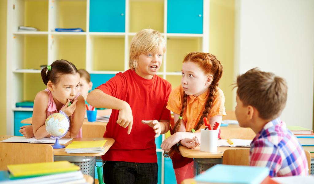 Wallpaper Schoolchildren have a conversation in the classroom.