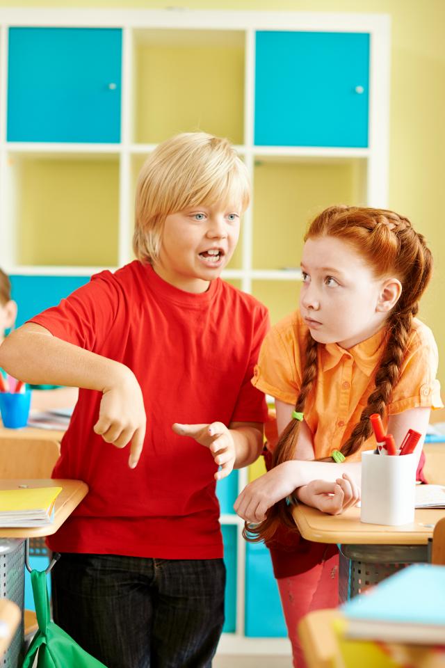 Wallpaper Schoolchildren have a conversation in the classroom.