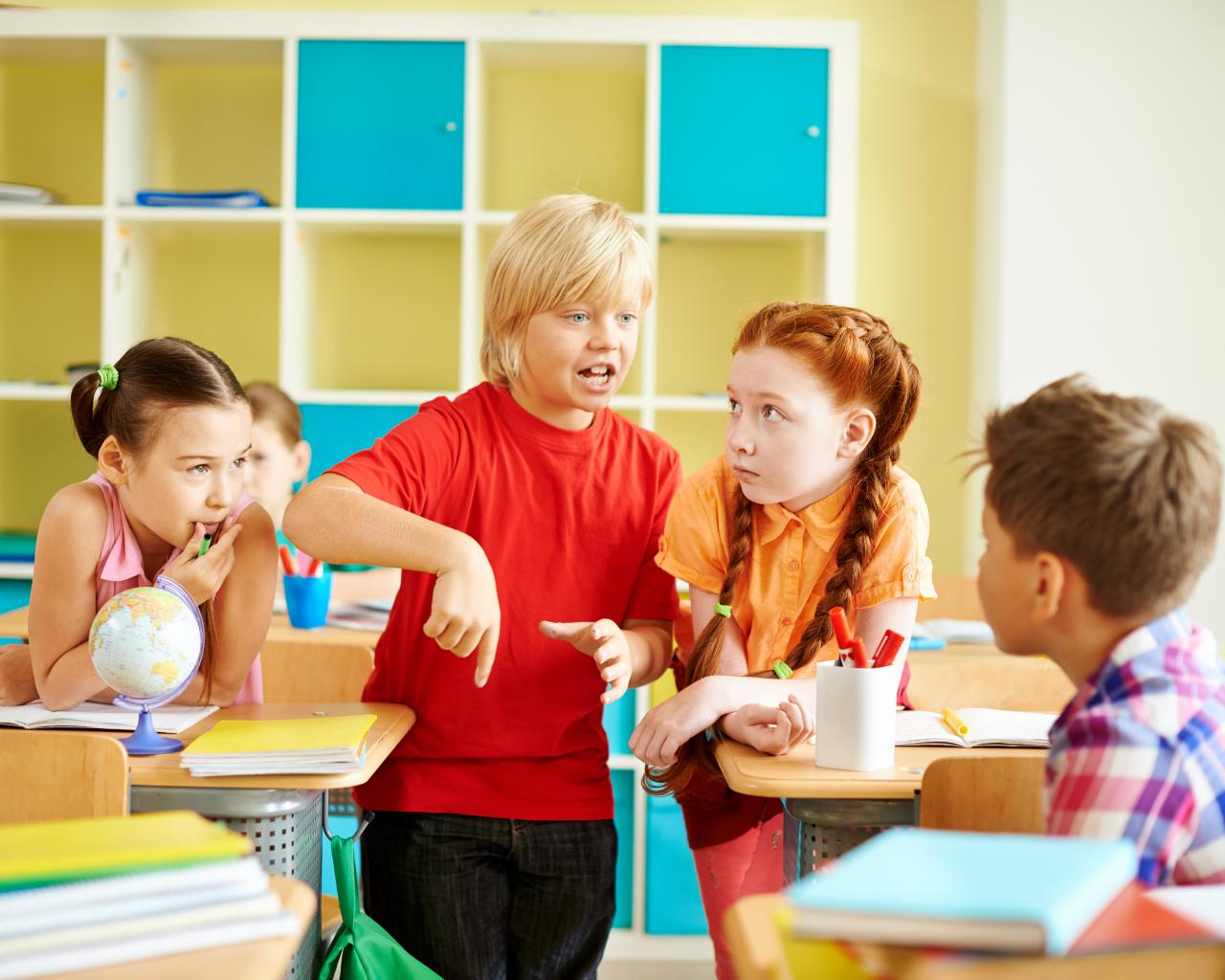 Wallpaper Schoolchildren have a conversation in the classroom.