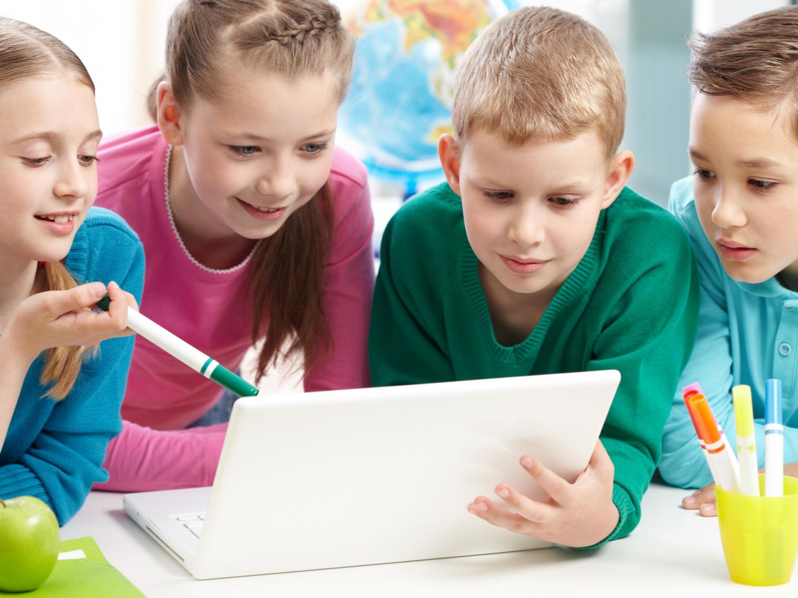 Wallpaper Children at school with a laptop