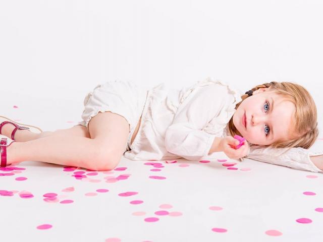 Wallpaper Little blue-eyed girl lies on the floor