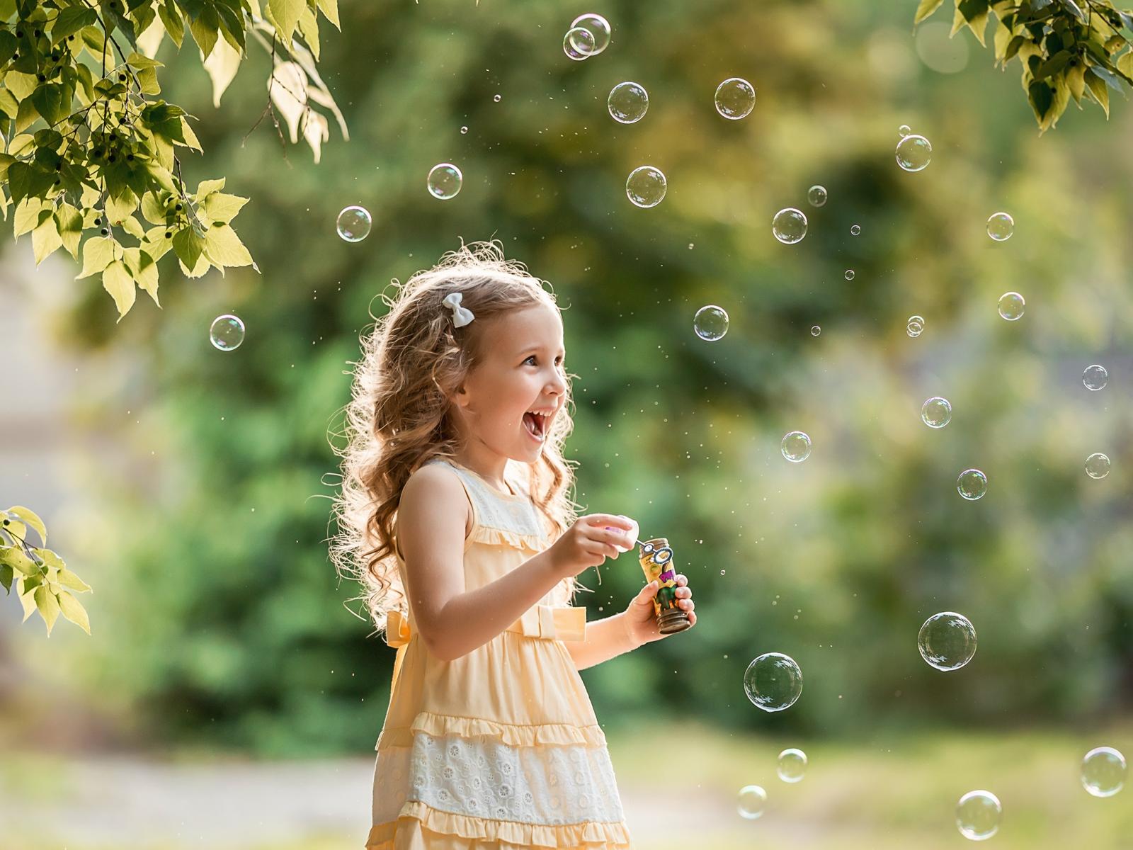 Wallpaper Girl with soap bubbles