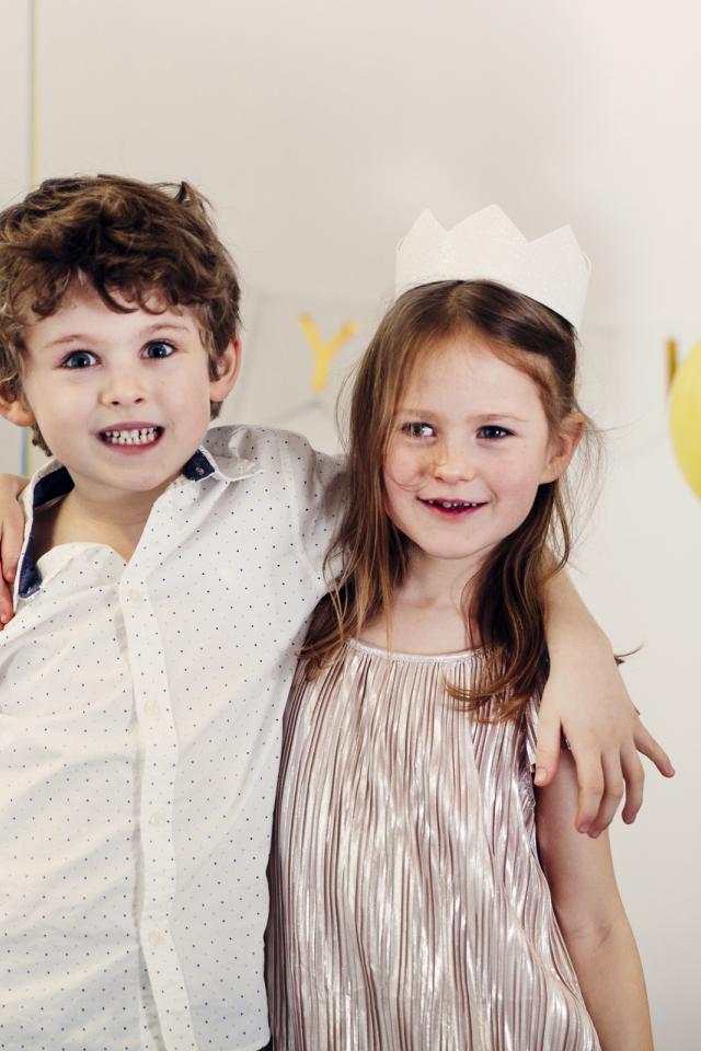 Wallpaper Little boy and girl on holiday with balloons