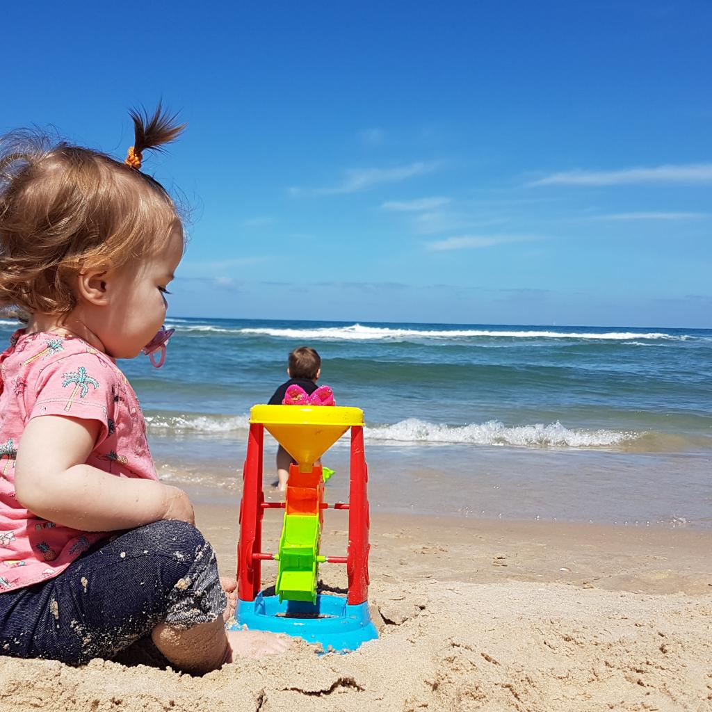 Wallpaper Little girl plays on the sand by the sea